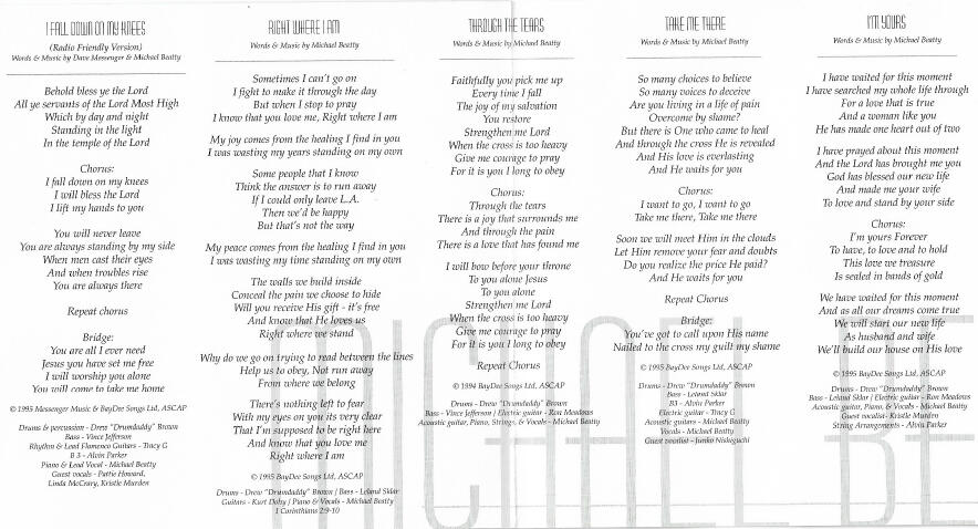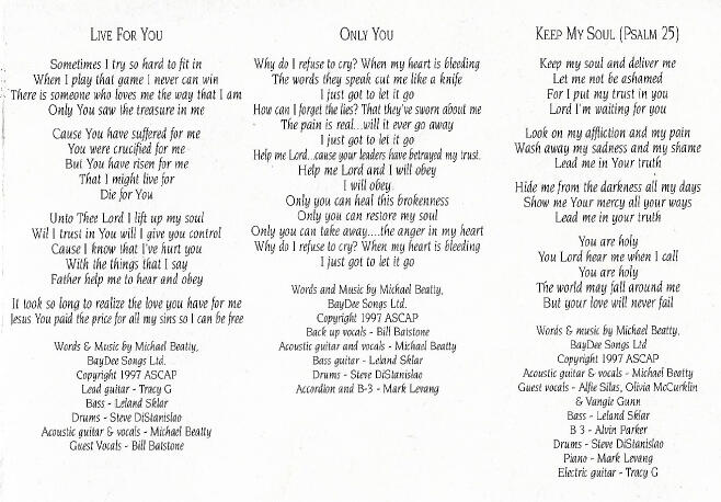 My first “Worship” project ever. It was recorded in my living room in 1994 on my new cutting- edge Tascam 688 porta-studio. A collection of tunes I’d written as a young Christian. They are extremely raw and the beginning of my songwriting for GOD.